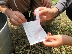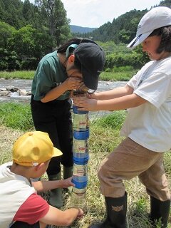 PACテストで水質を調べたり、生息している生物の種類から、水のきれいさを確認しました。