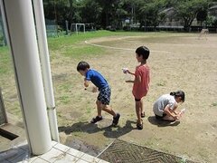 水着を着て、心ゆくまで、水鉄砲を楽しみました。
