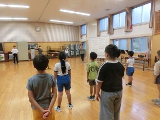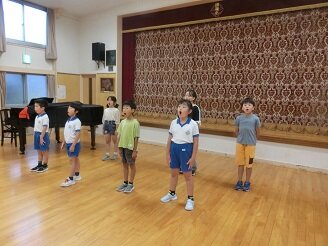 先週、地域の先生から教えていただいた発声練習の仕方を生かして、互いに口の形を見合って、練習しています。