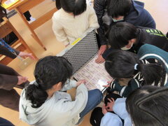 6年生は、間もなく卒業します。お世話になった校舎の掃除をしました。5年生も手伝いました。手袋をし、タワシに磨き粉をつけ、みんな一生懸命、床や壁を磨きました。