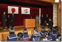横山町長をはじめ、七原教育長や来賓の方からお言葉をいただきました。また津具中学校の生徒代表が誓いの言葉を述べました。