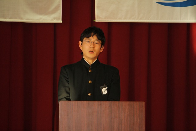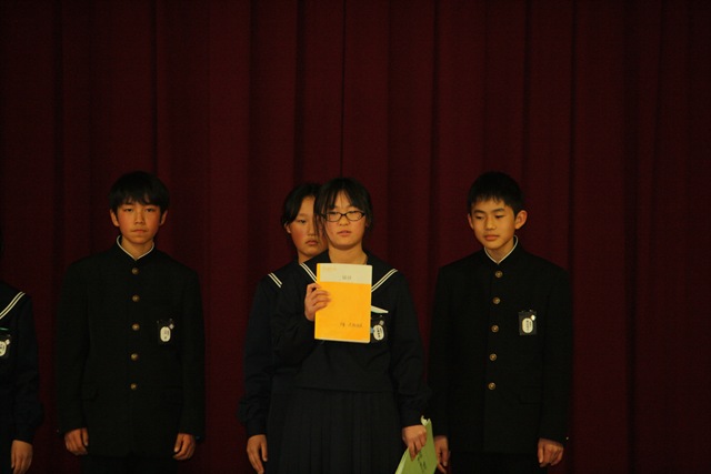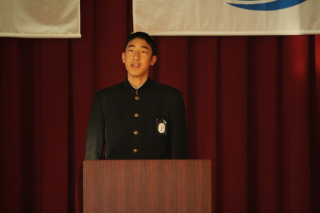 2月3日(月)全校朝礼で3年生の代表がスピーチを行いました。