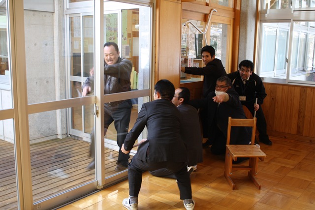 今回は3B教室に不審者が侵入するという想定で行いました。