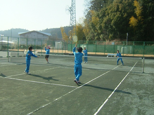 男子ソフトテニス部は、先輩からの熱い思いを、後輩の感謝の気持ちをボールに込めて打ち合いました。最後に、先輩から温かいメッセージをもらいました。
