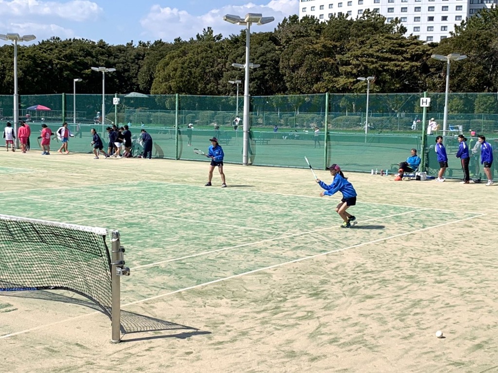 時折強い風が吹くコンディションの中、県内外16校が参加し、団体戦が行われました。