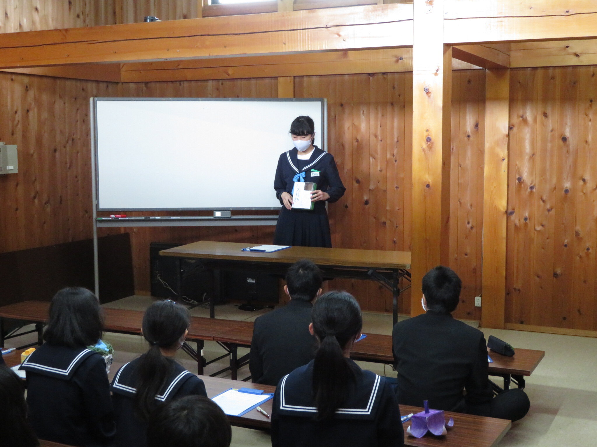 講話を聞いて生徒は、「『わかった』という返事に対して、何をどうわかったのかまで確認することが大切だと思った。」や、「クラスや学校の中で自分が一番だというものが、今あるかはわからないけれど、他の人に教えてもらいながら見つけていきたいと感じた。」といった感想をもちました。