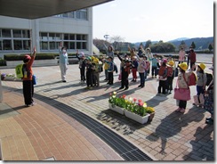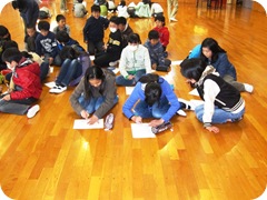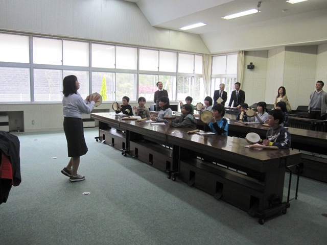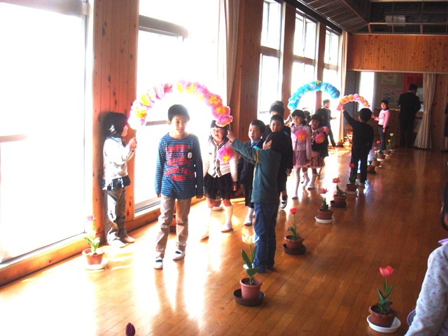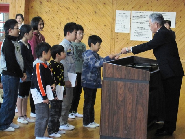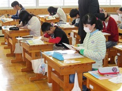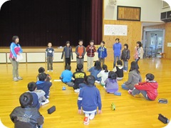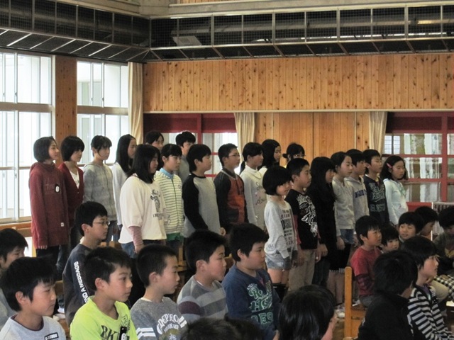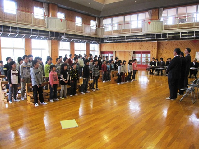 町長さんや、警察署の方のお話をいただいた後、 2~6年生が、歓迎の言葉と歌『友だちになるために』を贈りました。
