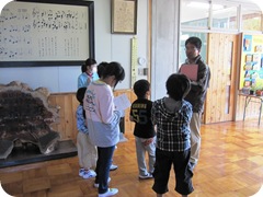 昨年度の卒業生が、他の小学校の卒業生に田口小学校のいいところを話しながら、校内を案内していました。
