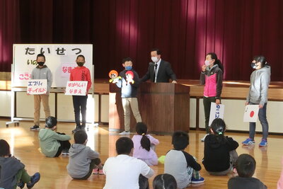 先生方からは、田口小の子どもたちの「優しい心づかい」にいつも感心していたというお話や、「笑顔、優しさ、勇気を大切に!」というエールもいただきました。