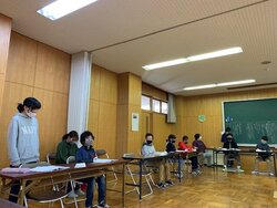 冬休みに向けた諸連絡の後、「密と飛沫を避ける」ため、各教室に分かれて校歌斉唱を行い、全体での締めくくりとしました。