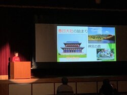 上下で6車線の高速道路を支える、高い橋脚の構造について学ぶとともに、実際にサービスエリアに乗り入れて、その近隣の史跡について学ぶこともできました。