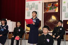 修了証が授与されました。伸びた背筋、前をしっかりと見る目線、清々しい返事。卒業した6年生にならったかのような姿が見られ、式の雰囲気が引き締まりました。