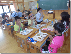 ◆授業参観後、今回、みえた先生方に子どもたちといっしょに給食を食べていただきました。授業だけではない普段の子どもたちの明るく、伸びやかな姿も見ていただくことができました。