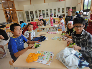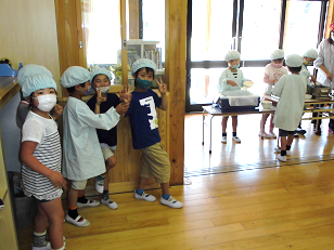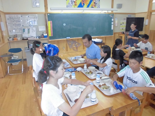 ◆授業参観後、今回、みえた先生方に子どもたちといっしょに給食を食べていただきました。授業だけではない普段の子どもたちの明るく、伸びやかな姿も見ていただくことができました。