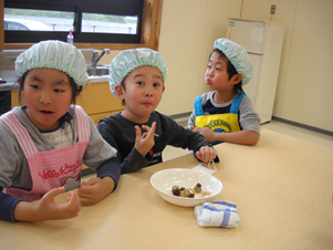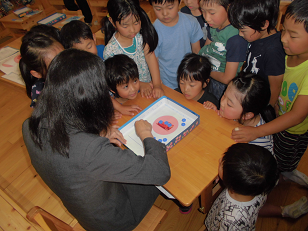 ◆おはじきを使って、10になる数の組み合わせを考える学習でした。先生はおはじきをはじいて、○の中に入れるゲームから、10になるための数を考えさせていました。