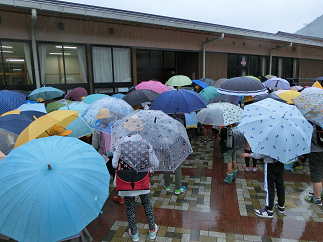 ◆この日も雨。全校帰りの会のときには、傘の花が咲いていました。
