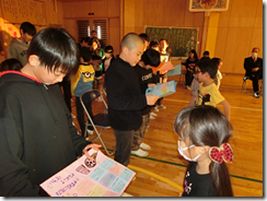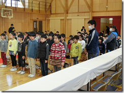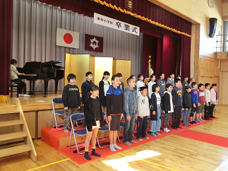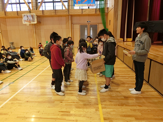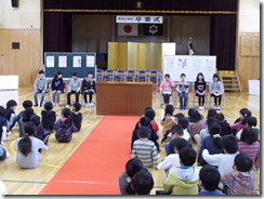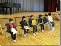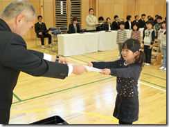 ◆修了式の前に、健康委員会による皆勤賞の表彰がありました。3学期の皆勤は、全校で71名、1年間の皆勤は、37名でした。昨年同様6年生を含めて、およそ3人に1人が1年間無欠席でした。代表の子どもたちは、胸を張って表彰状を受け取りました。