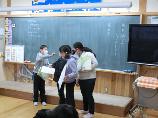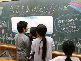 ◆各学級では、1年間のしめくくりが行われていました。片づけやまとめの活動をしていました。教室の黒板には、担任の先生から子どもたちへのメッセージが書かれていました。