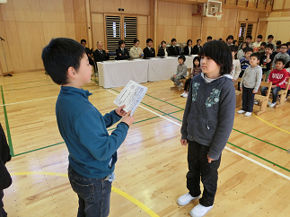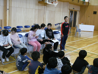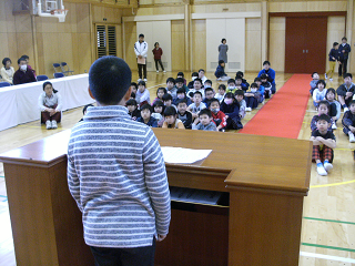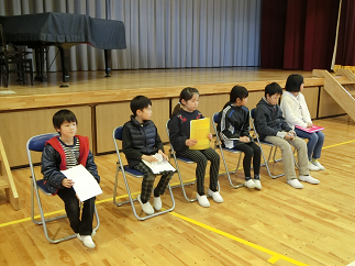 ◆修了式では各学年の代表が、3学期にがんばったことと来年度にがんばりたいことを発表しました。