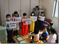 1年生:体を動かして、元気にがんばりました。外で元気に遊びました。2年生になったら、マラソン大会で新記録を出したいです。