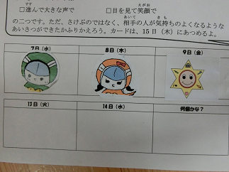 2年生:九九をがんばりました。お風呂上がりに、おじいさんに聞いてもらって、たくさん覚えました。3年生になったら、一輪車をがんばりたいです。のっぽ一輪車に乗れるようになりたいです。
