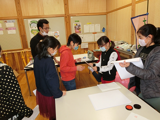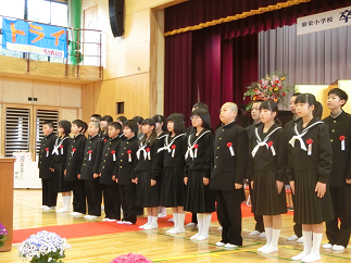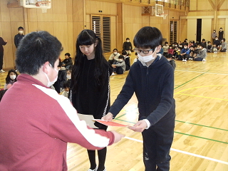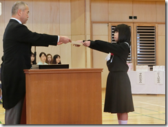 ◆担任の呼名後、代表者が校長先生から修了証を堂々と受け取りました。![]()
