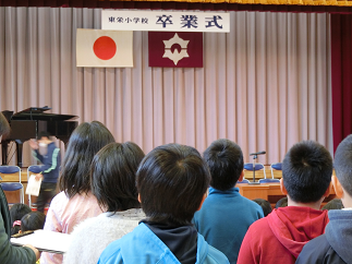 ◆校長先生からは200日ほどの登校日をがんばってきた子どもたちに、エールが送られました。また、今年の児童会スローガン『チャレンジ』に寄せて、「今年、自分の目標にチャレンジした人?」の問いに、ほとんどの子どもの手が挙がりました。4月からは学年が一つ上がります。仲間と共に、みんなで高め合う東栄小学校になることを期待しています。