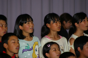 明後日の指導会本番に向けて、本日1年から4年生による壮行会が行われました。4年生が中心になって応援歌やダンス、エールを考え、1~3年生に教えながら練習してきました。今日はステージの5,6年生を前に、1~4年生で力一杯応援のメッセージを送りました。