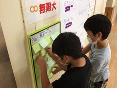 教室に閉じ込められた子どもたちは、正解しないと脱出できません。答え合わせはzoomで行います。最後に全学年の文字を並べたら「たいいくかん」になりました。幾重にもなったしかけで、大いに楽しむことができました。子どもたちの価値づけです。
