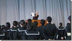 校長先生からは、日本の元陸上競技選手(女子マラソン)、高橋尚子さんの「座右の銘『何も咲かない寒い日は、下へ下へと根を伸ばせ。やがて大きな花が咲く。』」を紹介しての話がありました。