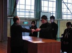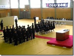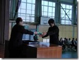 次に、1、2年生の代表がそれぞれにお礼の言葉を述べ、記念品として色紙とプレゼントを渡しました。