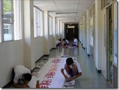 主に、体育大会の応援合戦の練習を、学年ごとに教室、武道場、運動場に分かれて行いました。