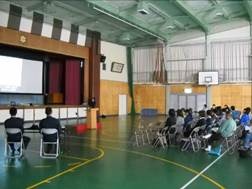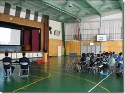 生徒たちは黙って、体育館に避難しました。