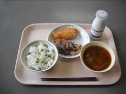 腸をきれいにしてくれるグリーンピース入りのご飯を美味しくいただきました。