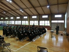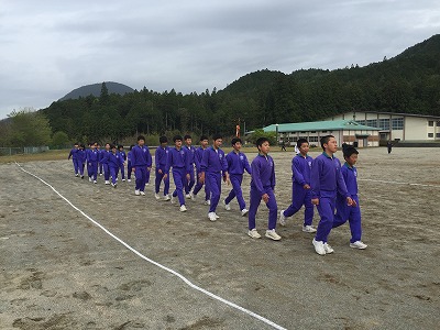 1年生の体験入部です。男子、女子ともに2つの部活動からの選択になります。選択肢が少ないのは小規模校の宿命ではありますが、どの部も2,3年生が中心となって、活発に活動できています。1年生は、最初から入部希望が変わらない生徒、体験をしてじっくり考える生徒、と様々です。いずれにしても、身体と心が鍛えられる部活動は、中学生にとっても意義のある、大切な活動であると考えています。