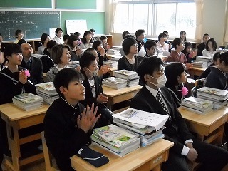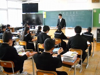 今回は「eネットキャラバン」の講師として、総務省東海総合通信局の加藤電気通信事業課長さんをお招きしての教室でした。驚くようなデータ提供もあり、情報を上手に利用・活用すること、依存してしまう状況時ならないようにするには等、様々な事例や現状をお話しいただきました。お礼の言葉は、最近、あいさつで大活躍の生徒会長大稀さんです。しっかりお礼ができました。