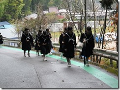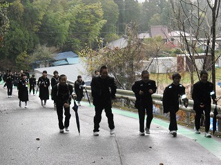 雄歩道の手前で感じたこと。学年が上がるにつれて足取りが重くなっているように思います。1年生が一番元気に雄歩道の坂を上がっていきました。この違いは、新鮮さからか、それとも他に原因があるのか、一人でいろいろ考えていました。
