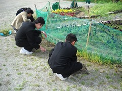 天真爛漫という言葉がぴったりの1年生が、トレーを持って運動場に飛び出してきました。「校長先生、ここって花壇?」とか「この花取っていい?」とか、楽しそうです。「萼のある花を探しているんです」と満天星や花桃の花を見ています。「この花、吸うと蜜が出るよ」と関係ないけど、生活感のある話しも聞こえます。1年生理科の植物の学習です。