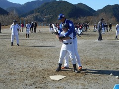 冷え込みが厳しかったこともあり、空気も澄んでいることも影響したのでしょうか、今朝の明神山は青空に映えて、雄大さを増している気がします。そんな明神山を背景に、野球部が朝練習をしています。