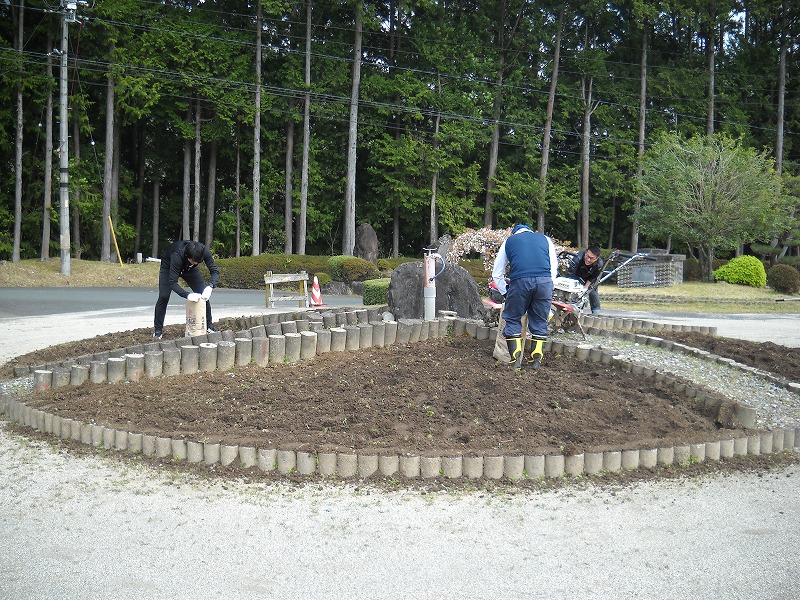 FBC花壇の準備のための種まきを、職員みんなでしました。