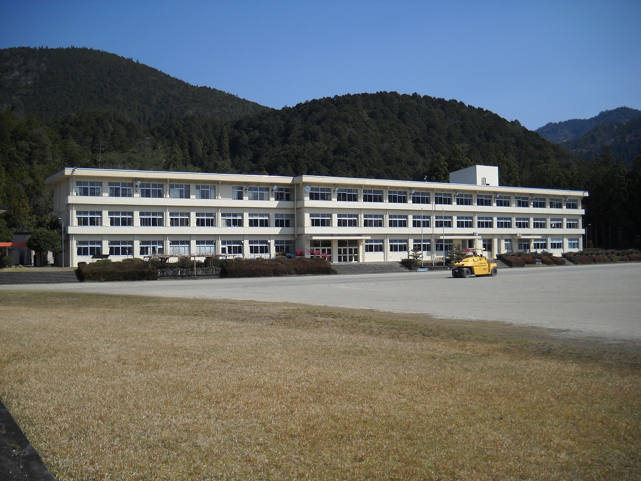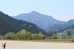 4枚目に写真に写っている山は「御殿山(ごてんざん)」です。本校の西側に望める半円形をしたまあるい山です。標高は789m、月地区にあります。麓には月地区のの氏神「槻(つき)神社」、頂上には千代姫をまつる「大村神社」があります。登山もできますが、残念ながら頂上からの眺望は期待できません。本校よりも東栄小学校からの方が雄姿を拝することができます。
