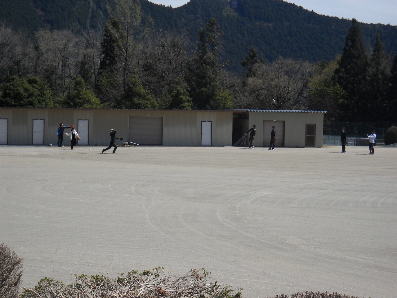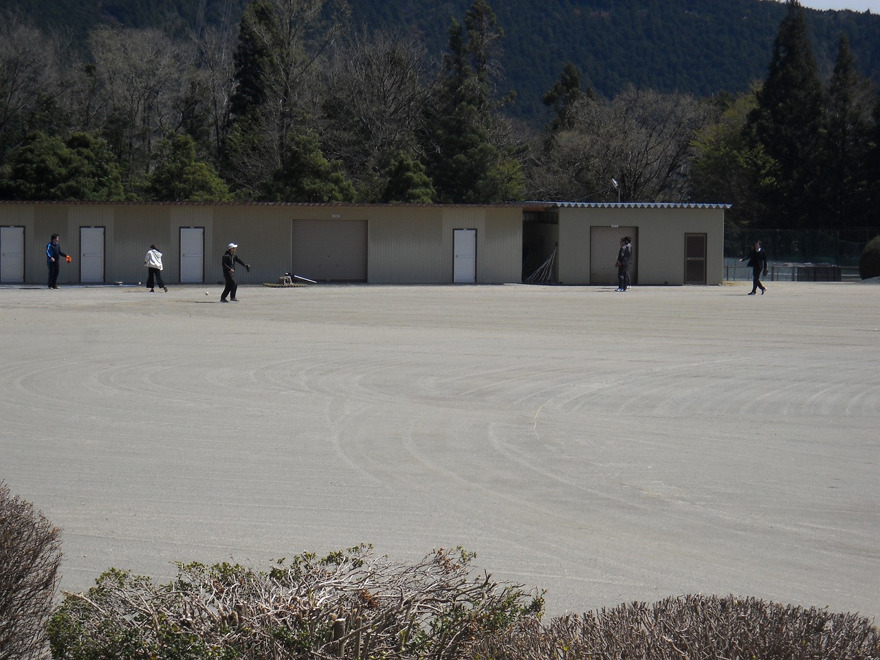 臨時休業2日目です。午後、先生方が外で活動を始めたので、取材に行ってきました。寛幸先生をリーダーに、悠里先生と鈴田先生が花壇整備をしています。「今日石灰をまけば、来週肥料が入れられる」という寛幸先生の声に「やる気がわいてきた!」と気合いを入れる鈴田先生の姿がありました。「大きくきれいに咲くんだよ、と声をかけながらやるんだよ」と助言をすると、鈴田先生は「ほんとですか?」とあまり信じたふうではありませんでした。本当なんだけどなあ・・・。本村先生が除草のために、運動場整備を進めてくれています。生徒は来なくても、学校は確実に動いています。生徒もきっと家庭で有意義にすごそうとしているだろうな、と想像しています。