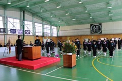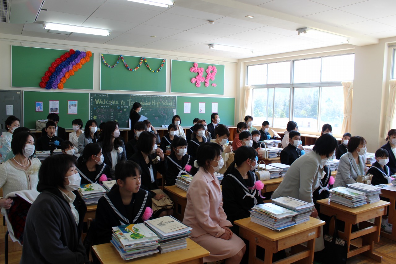 新2・3年生の今年度最初の登校日でした。1名の転校生と7名の新しい先生を迎える式を行いました。新しい先生は一野瀬教頭先生、高橋先生、悠里先生、裕歌子先生、樫内先生、鈴田先生、湯浅先生(名前だったり、名字だったり色々ですが、別に他意はありません)です。お一人お一人からあいさつをいただいた後、生徒代表の結子さんが歓迎の言葉を贈りました。