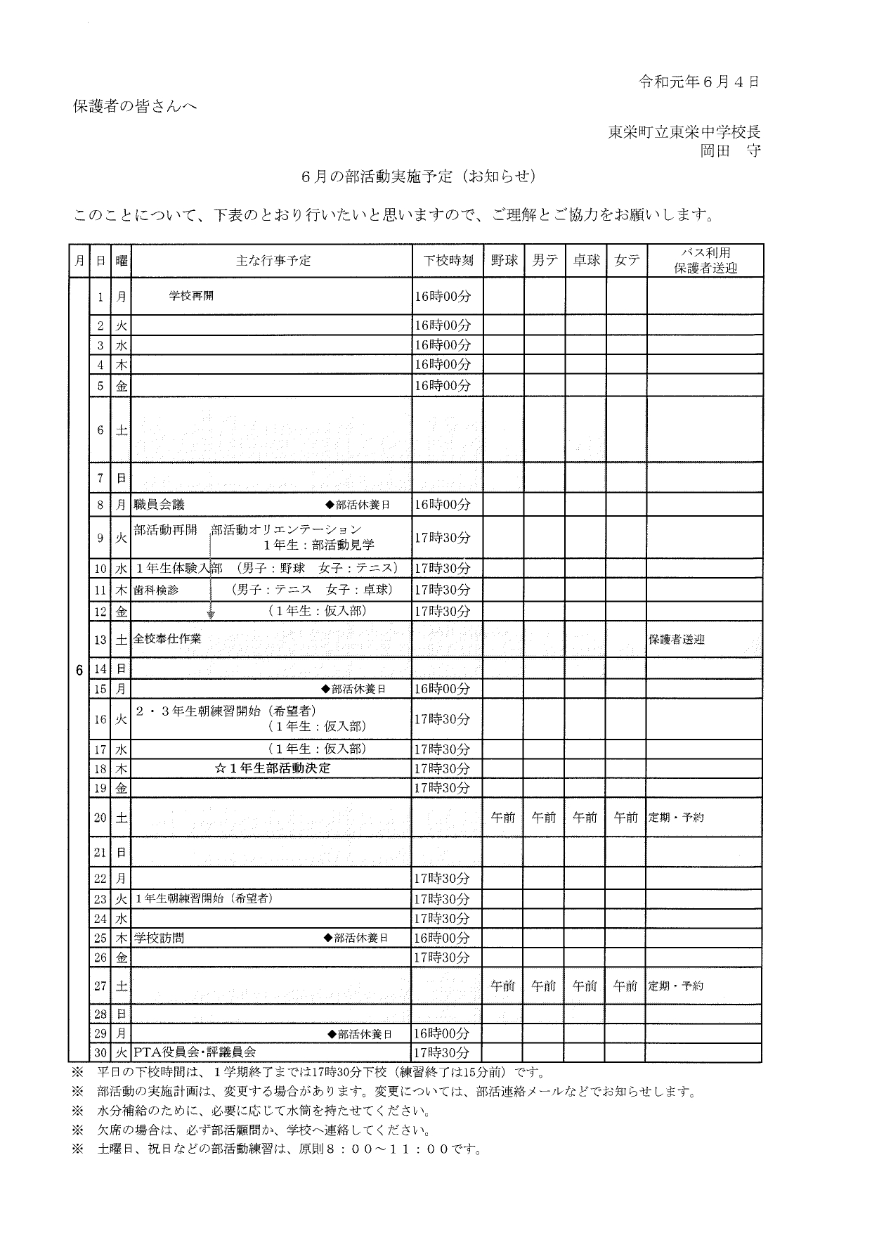 また、今回の補正予算では、生徒一人1台のタブレット端末、給食費の6月~9月までの無償化も認められました。町民の皆さんの、「町の子どもたちのために!」という熱い思いを感じます。学校はそれに応えるべく、さらに充実を図り、その責任を果たしていかなければなりません。ご理解とご協力に感謝します。