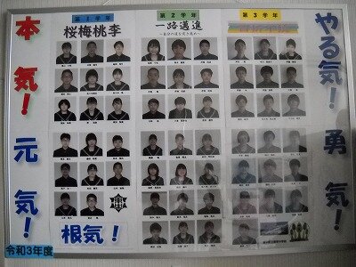5月17日の朝礼では、校長先生から問題が出題されました。「この花の名前を知っていますか。毎年この時期に咲く花で紹介をしていますが、知っていますか。」とヒントと一緒に話されていました。ピクニックでも見かけたかもしれません。でもわからない生徒は、多かったように思います。「わからん」がヒントでしたね。正解は、是非、生徒に聞いてみてください。毎年、校長先生がこの時期に咲くこの花の話をされていることを思い出しました。また、1年生の学級訓「桜梅桃李」の周りにそれぞれの誕生花が飾られています。季節折々の花に注目して、観察するのもいいですね。