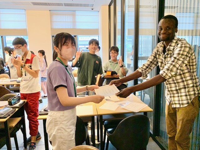 留学生の皆さんからは、子ども一人一人に「語学研修修了証」を手渡していただき、添えられたラストスピーチには、温かいお言葉、アドバイスがいっぱいでした。