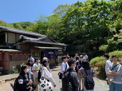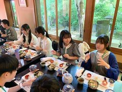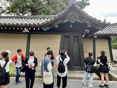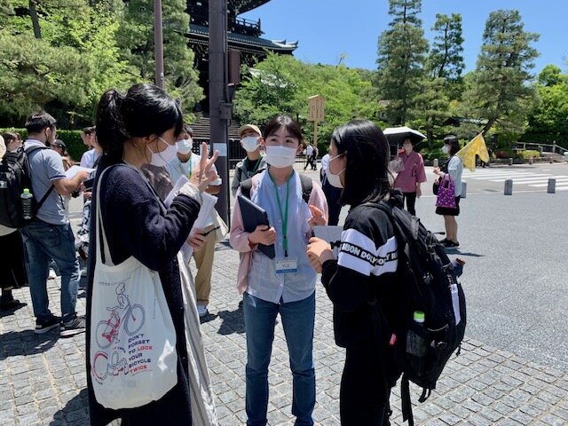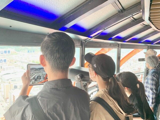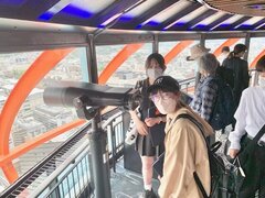 京都タワーでは、この3日間に訪れた地、見学した寺院などを、望遠鏡で再確認することができ、あちらこちらで「見つけた!」という歓声が上がっていました。タワーに隣接するビュッフェレストランや、階下に広がるお土産売り場では、研修の最終日を惜しみつつ、目を輝かせて友達と談笑する姿がありました。