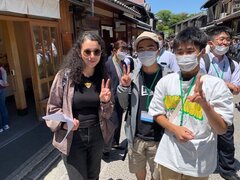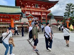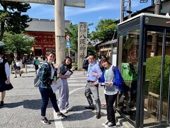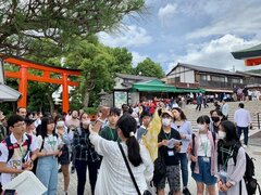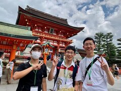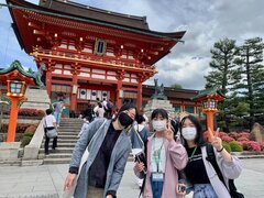 学校からは、東中マグカップなど、各班を担当する留学生の皆さんに「サプライズプレゼント」を用意してきましたが、なんと、班に所属せずに2日間「まとめ役」に徹してみえたファシリテーターさんへの「感謝の贈り物」も、こっそり伏見稲荷で買っていた男子がいたのでした。そのことの感動もあわせ、語学を超えた、すてきな心の交流ができたことを、引率者としても、たいへん嬉しく、誇らしく思います。