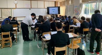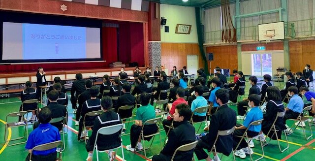 3年語学研修の発表は、プレゼン画面とステージを使ったテンポのよい展開で、留学生の皆さんとの価値ある交流により、学びを深めてきた様子がよく伝わってきました。教育長先生からも講評をいただき、3年生は、あらためて有意義で実りある研修をやり遂げた充実感を感じていました。東栄町の皆さん方、町当局のご支援に心より感謝申し上げます。