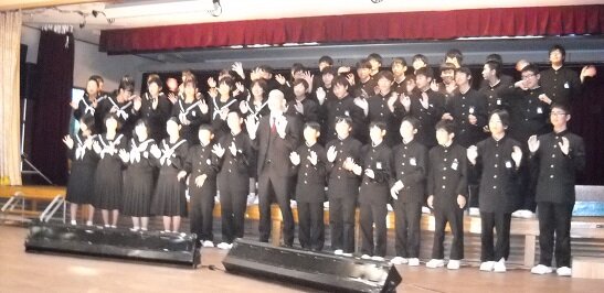 この後、子どもたちは、「木山裕策さんを間近に感じられる」講演とミニコンサートで、「本物との出会い」も味わうことができました。木山さんから「チーム東中」の合唱のよさをたっぷりとお褒めいただき、ますますこれからも頑張りたいと願う私たちです。
